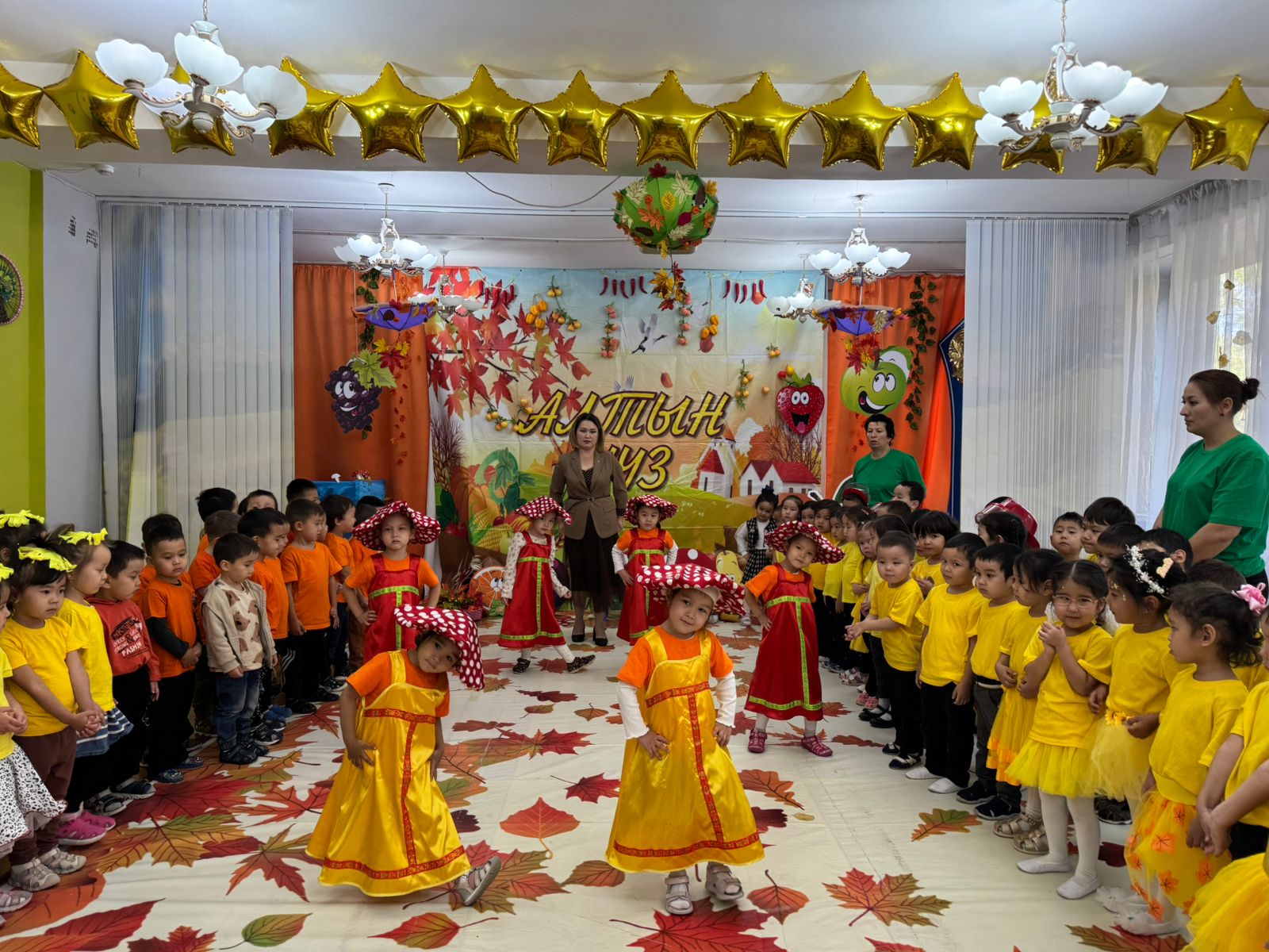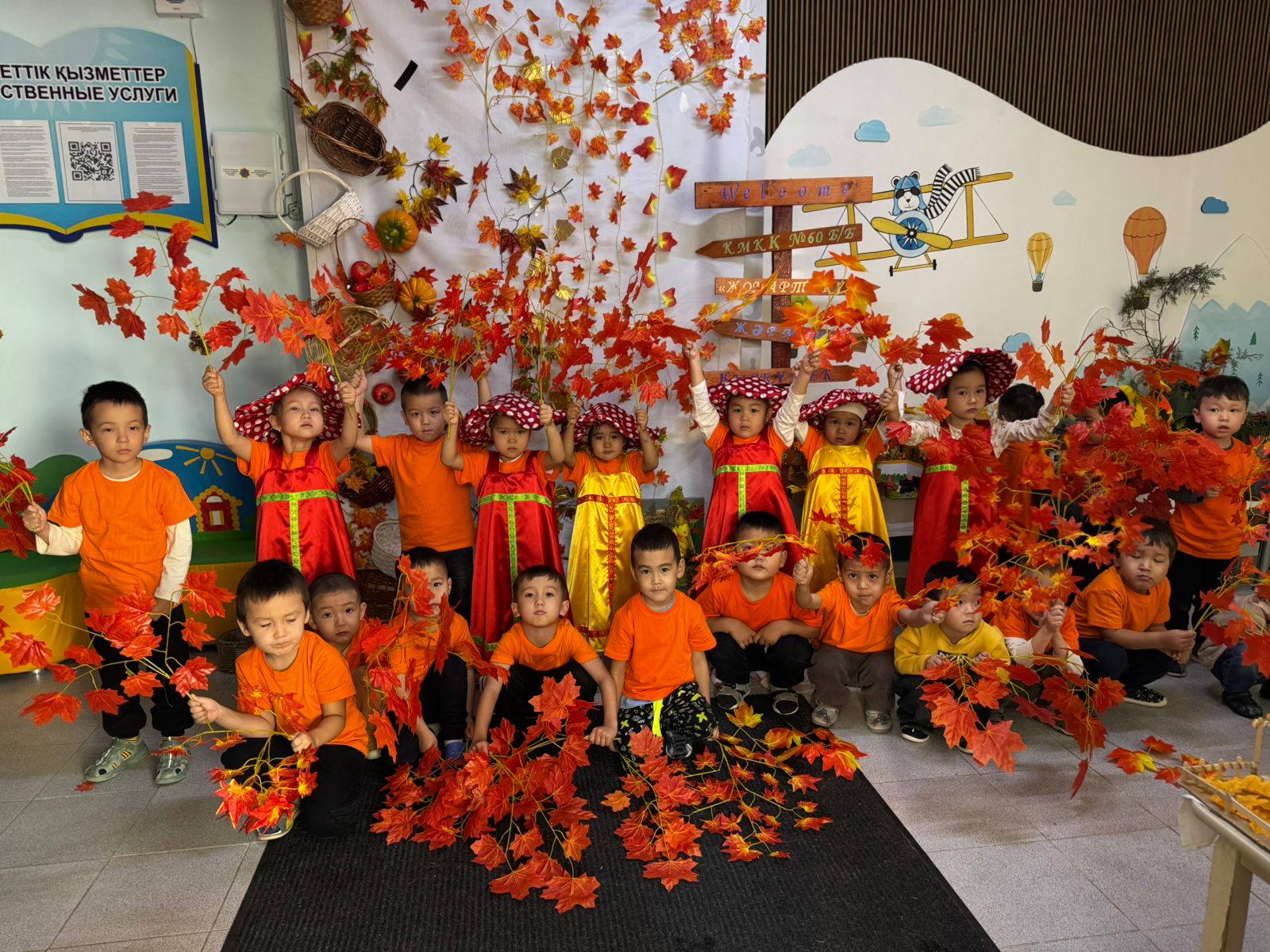 ✨Бүгін біздің балабақшада алтын күздің берекелі сыйын арқау еткен “Жомарт күз” атты ертеңгілік мерекесі жоғары деңгейде өтті🤗Балалар түрлі түсті күзгі киімдер киіп, ән айтып, би билеп, күз туралы тақпақтар мен көріністер көрсетті👏👏👏
